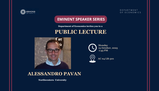 The Economics Department invites you to a public lecture by Professor Alessandro Pavan on 13 October at 1.45 pm as part of its Eminent Speaker Series.