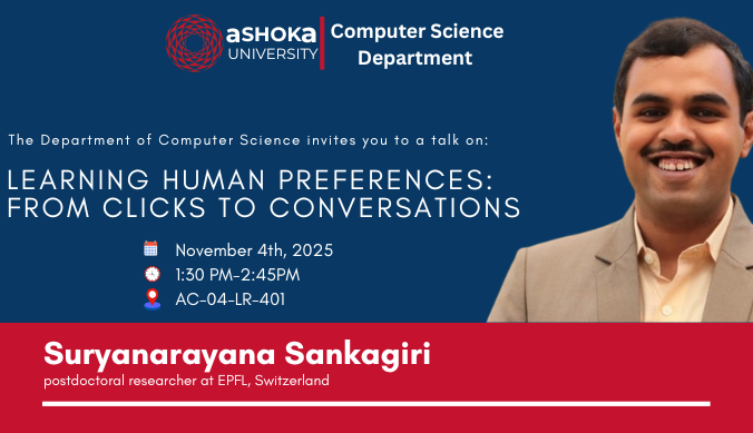 Bio- Suryanarayana Sankagiri is a postdoctoral researcher at EPFL, Switzerland, in the Information and Network Dynamics Laboratory. He obtained his B.Tech. in Electrical Engineering from IIT Bombay in 2016, and his M.S. and Ph.D. in Electrical and Computer Engineering from the University of Illinois Urbana-Champaign in 2018 and 2022. During his Ph.D., he worked on the design and analysis of network protocols—ranging from message-passing algorithms for graph clustering, to consensus mechanisms in blockchains, to pricing protocols for payment channel networks. At EPFL, his research focuses on recommender systems that learn from comparisons and choices, designing new algorithms as well as models that better capture human behaviour. More broadly, his interests lie in understanding modern human-in-the-loop intelligent systems.