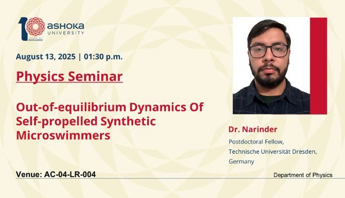 About the Speaker: Dr. Narinder a Postdoctoral Fellow at Technische Universität Dresden, Germany, in the group of Prof. Elisabeth Fischer-Friedrich, within the Physics of Life cluster. Currently, ​his research investigates the non-equilibrium dynamics in the actin cortex of living cells, with emphasis on time irreversibility, entropy production, and effective temperature regulation—representing an interdisciplinary bridge between soft matter physics and cellular biophysics.