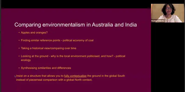 The first talk in the series was on Politics and Resistance of Coal in Australia and India; Climate Justice Activism in the Global North and South by Dr. Ruchira Talukdar, Co-Founder & Director, Sapna South Asian Climate Solidarity held on SEP 15, 2025.