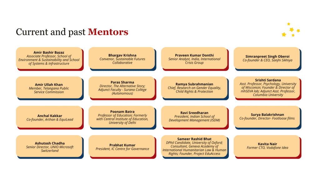 Peer learning at the Young India Fellowship is fostered through collaborative spaces—workshops, team-building, and reflective conversations—where Fellows learn with and from each other. Co-created by the Fellows’ Council and the YIF Team, these circles nurture mutual growth, diverse perspectives, and deeper self and social understanding.